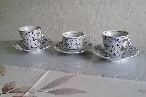 Und die Tassen nochmal in Nahaufnahme. Die kleine Tasse war „meine“. Der Inhalt meiner Tasse bestand als kleines Kind beim Kaffeetrinken zu 99,99% aus Milch, die für mich nicht sichtbar mit ein Paar Tröpfchen Kaffee „verlängert“ wurden. Ich sollte das Gefühl haben, auch richtigen Kaffee zu genießen.